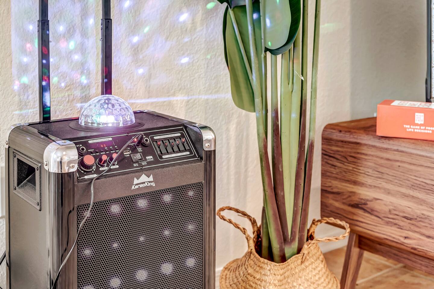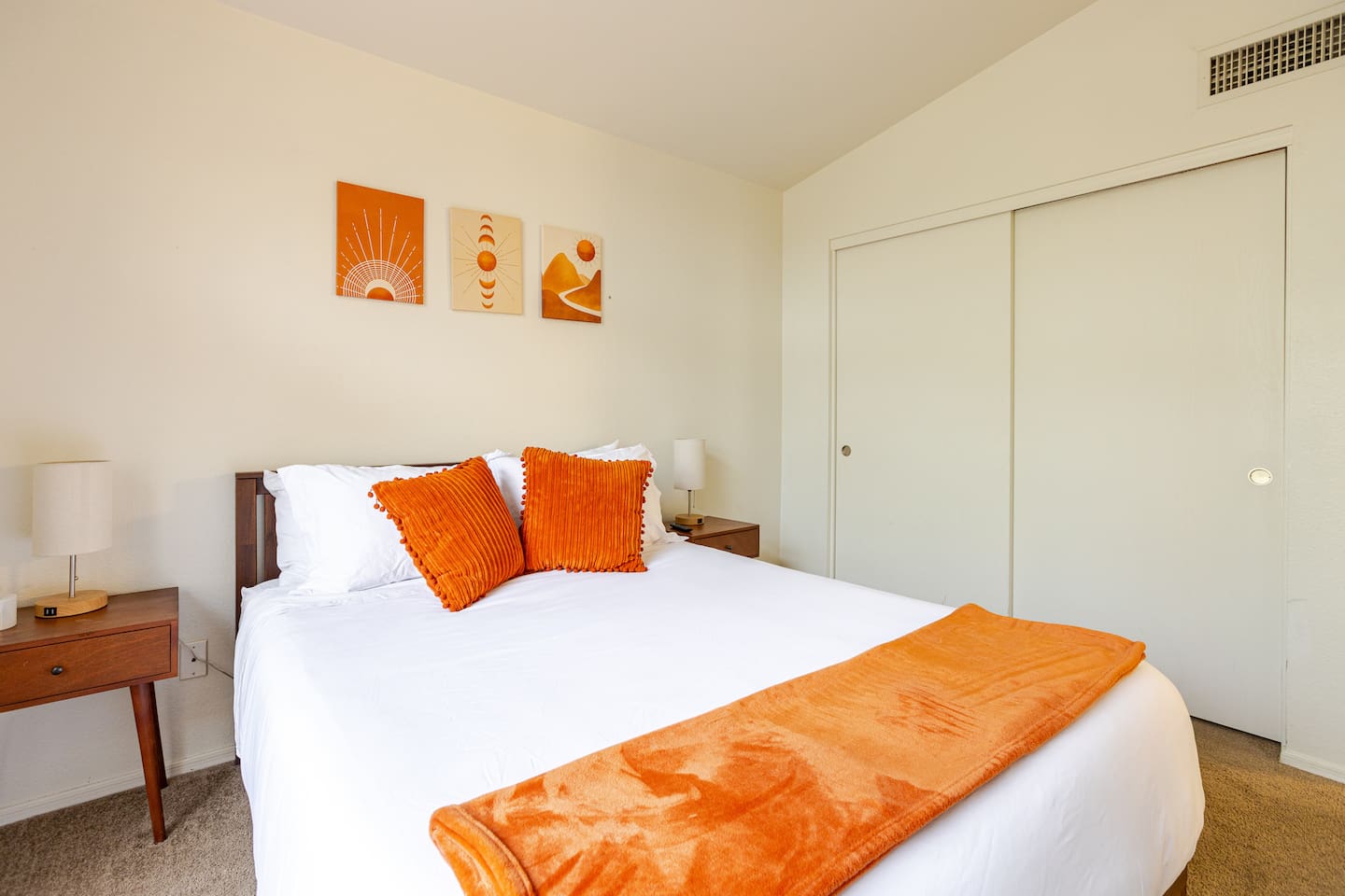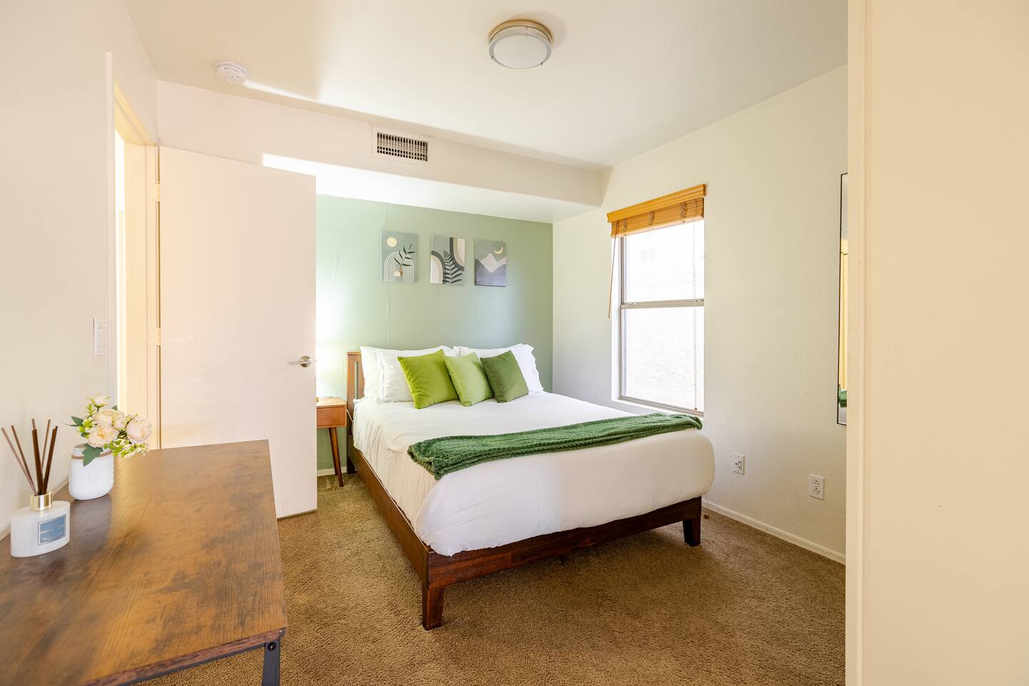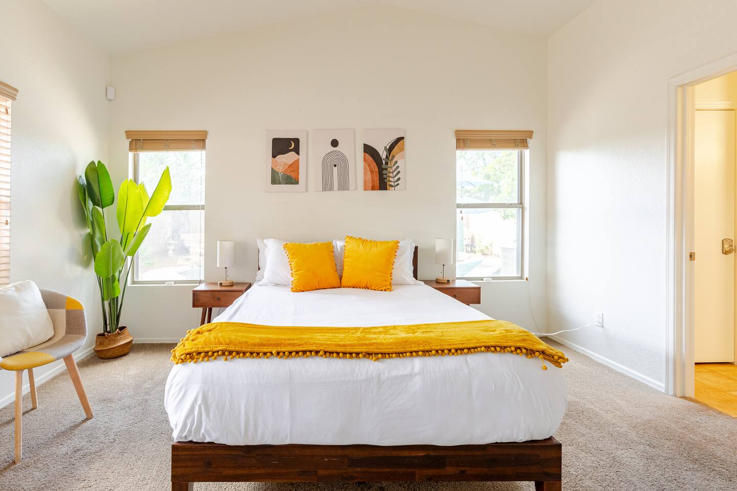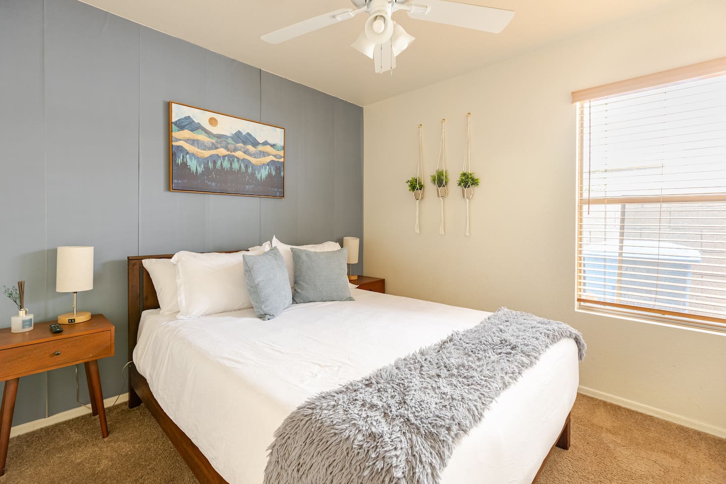 Welcome to your desert getaway! Step inside this bright and airy single-level home, where vaulted ceilings and contemporary décor create a cozy atmosphere. The main living area is the heart of the home, perfect for gathering for movie nights on the 55” Smart TV or enjoying a fun round of karaoke. This flexible space also includes two sofa beds and a futon for little ones. Your fully equipped kitchen features modern appliances and everything you need to prepare delicious home-cooked meals. Share dinner together at the dining table for six, or enjoy a casual bite at the kitchen bar. When it's time to rest, four calming bedrooms await, each styled with a plush queen bed and a smart TV. The master suite offers added privacy with its own en-suite bathroom featuring a modern walk-in shower. Step outside to discover your private, resort-like backyard. Make a splash in the heated pool, grill up a feast on the patio, or challengeWelcome to your desert getaway! Step inside this bright and airy single-level home, where vaulted ceilings and contemporary décor create an inviting atmosphere. The main living area is the heart of the home, perfect for gathering for movie nights or a fun round of karaoke. The 55” Smart TV is ready for entertainment with Netflix, Amazon Prime Video, HBO Max, Hulu, Disney+, and Apple TV. This flexible space also includes two sofa beds and a futon for additional sleeping options. Your fully equipped kitchen features modern black appliances, wood cabinets, and everything you need to prepare delicious home-cooked meals. Share dinner together at the dining table for six, or enjoy a casual bite at the kitchen bar. When it's time to rest, four calming bedrooms await, each styled with a plush queen bed and a smart TV. The master suite offers added privacy with its own en-suite bathroom featuring a modern walk-in shower with a pebble floor. The other bedrooms share a pristine bathroom with a shower-tub combination. Step outside to discover your private, resort-like backyard. This fully fenced space is perfect for peace of mind. Make a splash in the heated pool, grill up a feast on the patio, or challenge friends to a game of Cornhole. As the sun sets, unwind in a lounge chair and enjoy the peaceful Arizona sky. We've thoughtfully included amenities for every traveler: - For Families: A crib, high chair, children's dinnerware, and board games are available. - For Remote Work: Stay connected with high-speed WiFi and a dedicated workspace. - Pet-Friendly: We are happy to welcome your furry friends to our home.