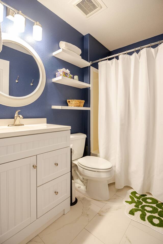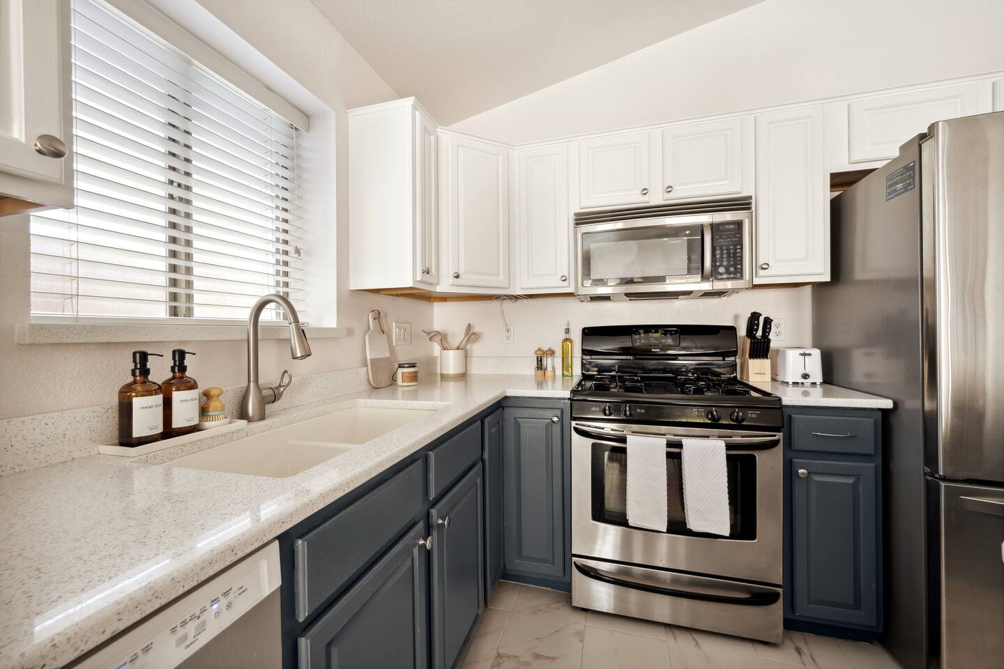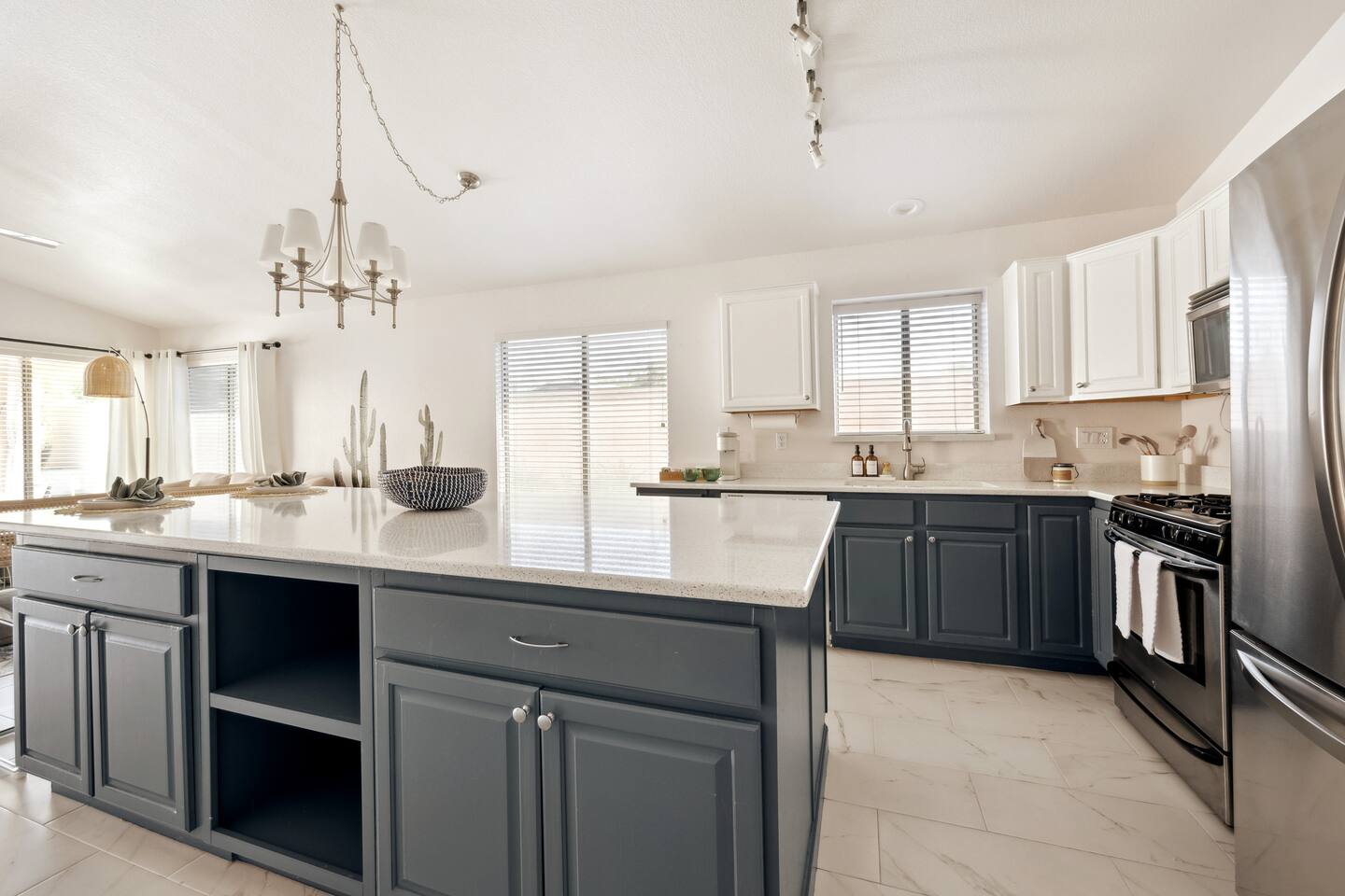 Step inside to a bright, airy open-plan living space with plenty of natural light. The spacious living room provides cozy seating and a smart TV, flowing seamlessly into a fully equipped kitchen. Gather around the large kitchen island for a casual breakfast or enjoy a group dinner at the dining table. After a day of exploring, it's the perfect spot for a movie night. This home accommodates your group across three bedrooms featuring plush bedding and its own smart TV. The master suite includes a private bathroom for added comfort, and a sofa bed in the living room provides extra flexibility. The two bathrooms are stocked with fluffy towels and complimentary toiletries to make your stay effortless. Your private backyard is a fun-filled retreat. Challenge friends to a round on the mini-golf course, cool off in the heated pool, or play one of the life-size games. As evening falls, gather around the fire pit to share stories under the stars. - Family-Friendly: We provide a high chair, pack 'n play, and board games for our younger guests. - Pet-Friendly: We are happy to welcome your furry friends to our home. - Work-From-Home Ready: A dedicated workspace and high-speed WiFi are available for your convenience.