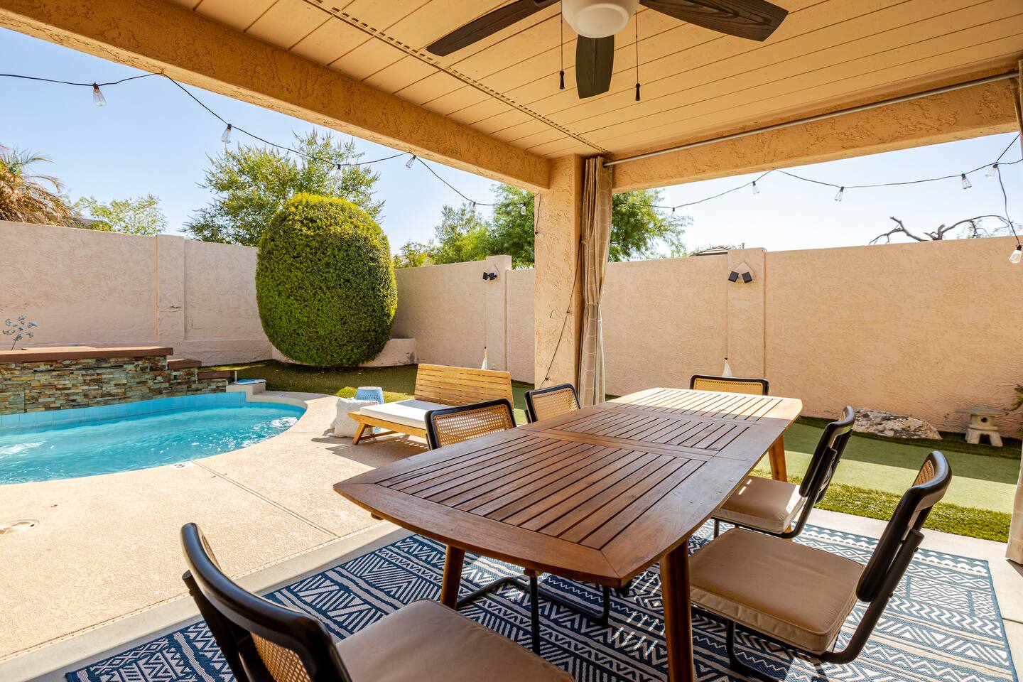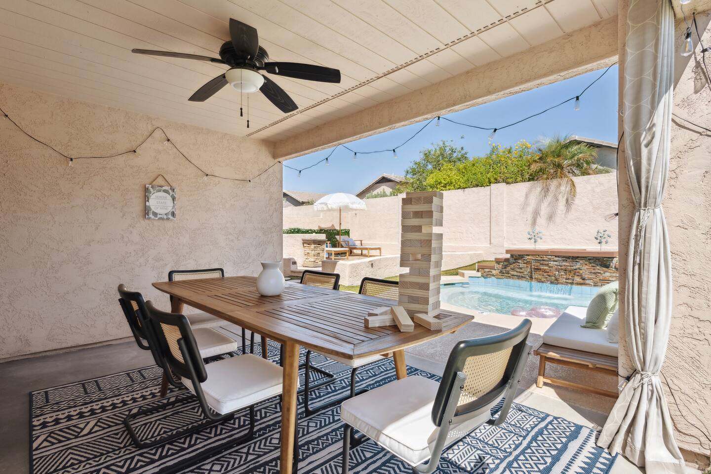 The Neighborhood Our home is ideally located in the heart of Uptown Phoenix. You are just minutes away from premier destinations, including: Shopping and dining at Desert Ridge Marketplace The JW Marriott Desert Ridge Resort & Spa World-class care at the Mayo Clinic Top-rated golf courses and scenic hiking trails Getting Around Ample parking is available for your vehicles in the driveway or on the street. House Rules To ensure a wonderful stay for you and to respect our community, we ask that you observe the following rules: - No parties or events are permitted. - Please be mindful of noise, especially at night. Our home is in a quiet, family-friendly neighborhood. A $500 fine will be applied if noise complaints are received. - Smoking is strictly prohibited inside the house. A $1000 fine will be assessed for violations. You may smoke responsibly on the outdoor patio. Important Information - Security: For your safety and to enforce house rules, the property is equipped with exterior security cameras and an indoor noise monitoring device. The noise monitor does not record audio; it only measures decibel levels. - Pool Heating: The pool is heated for year-round enjoyment. However, please be aware that during periods of very cold weather, the water temperature may be affected. Guests are welcome to enjoy the pool in its natural state during these times. - Single-Level Home: The entire home is on a single level, with no interior stairs, making it easily accessible - Local Guide: We include a guide with our favorite local recommendations for dining, shopping, and activities to help you experience the best of the area. .